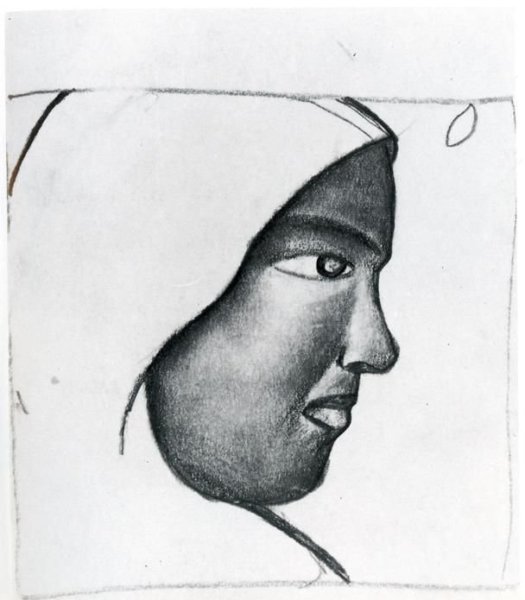 Kép: Kazimir Szeverinovics Malevics, Női fej profilból, 1911-12.